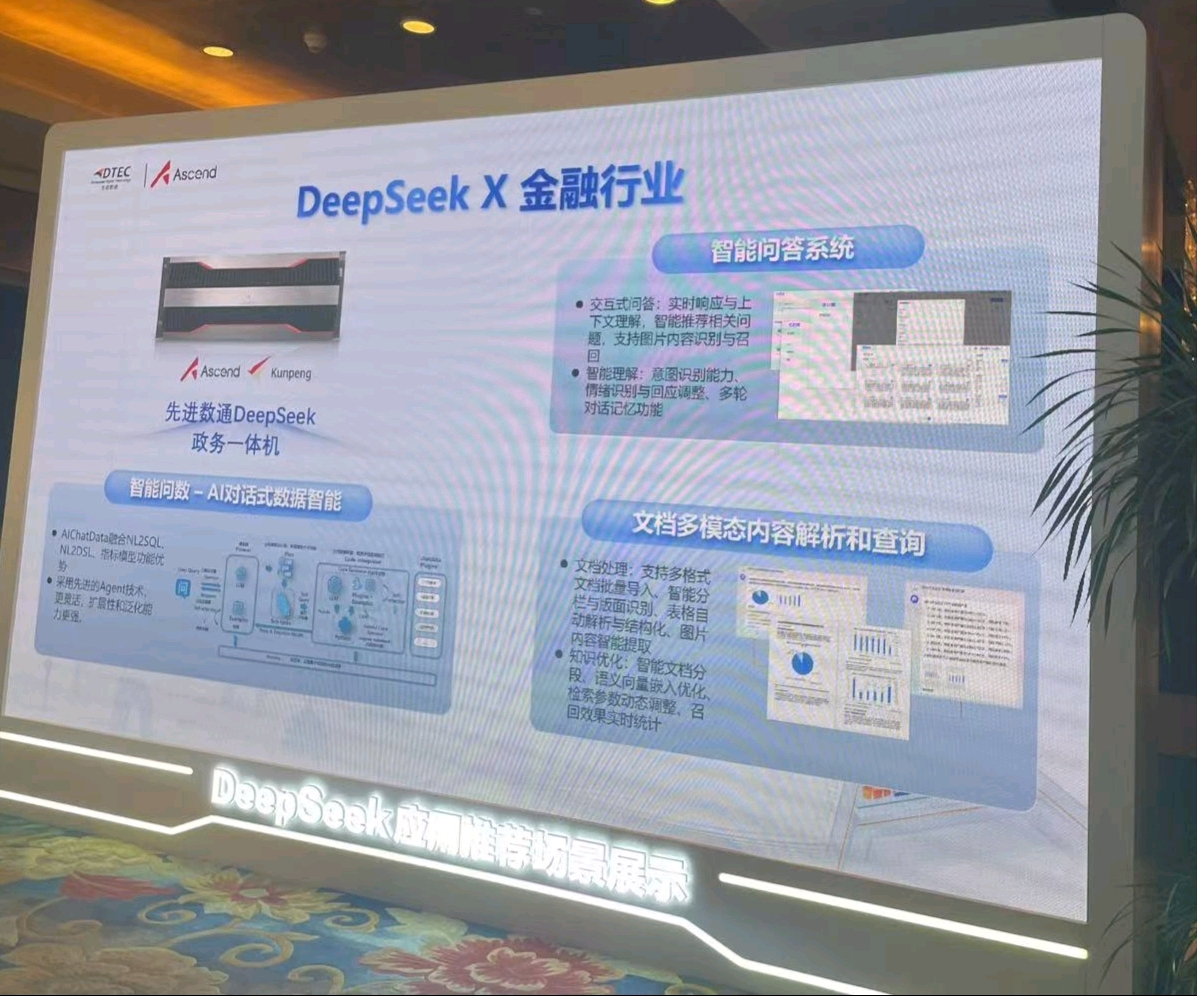 本次大会金年会jinnian展示了DeepSeek一体机,向业界全方位展示了其在金融科技领域的创新实力。金年会jinnianDeepSeek一体机的文档多模态内容解析和查询功能备受瞩目。它能够对各类金融文档,如研究报告、监管文件、交易记录等进行全方位解析,将文本、图表、图像等多模态信息转化为可高效查询和分析的结构化数据。金融组织借此可快速定位关键信息、洞察市场趋势、防范合规风险,为决策给予有力支持,实现从数据到价值的高效转化。